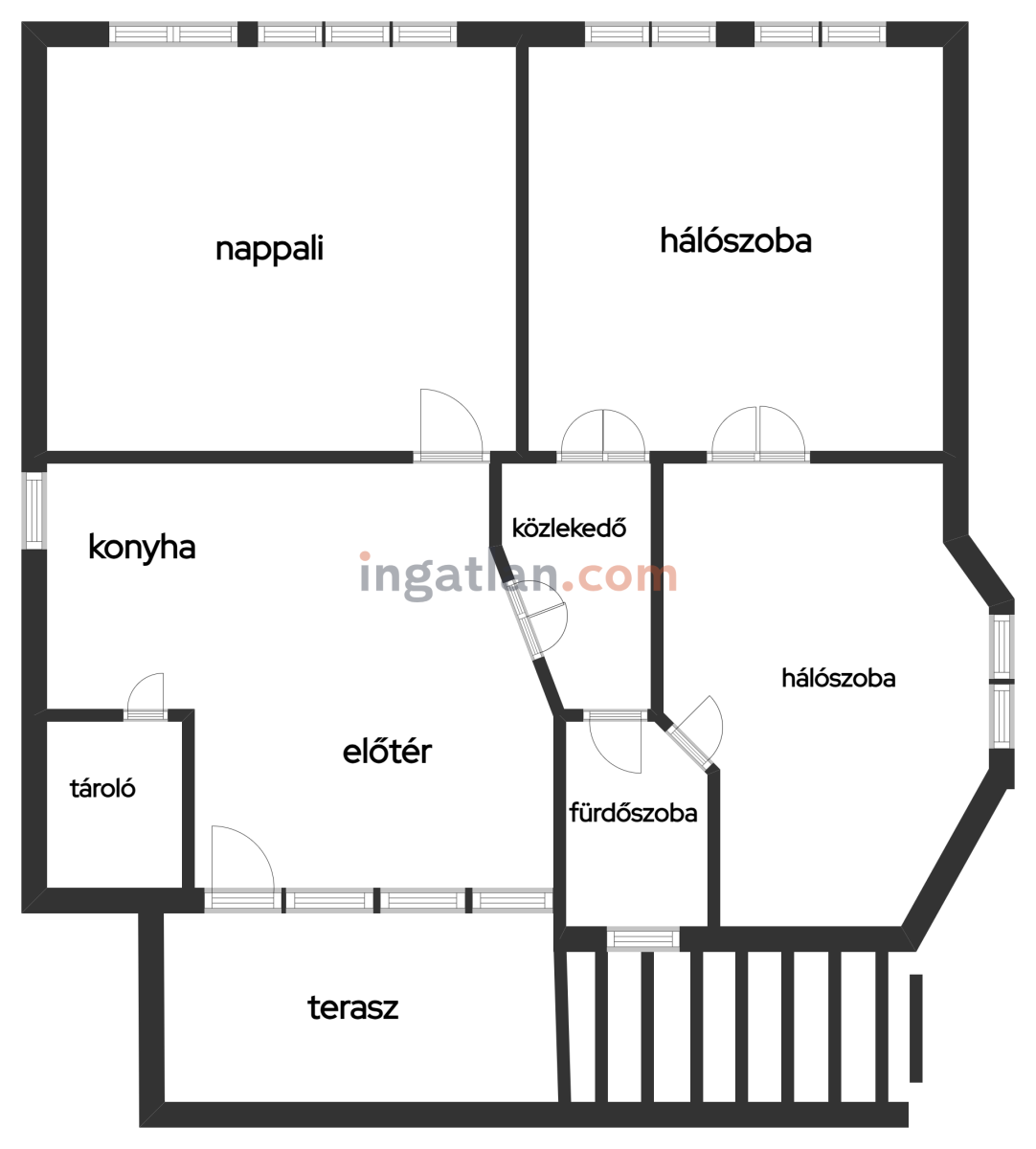 Nagyon szépek a fából készült ajtók. Mindegyik ablakon redőny van, az ablakok igény szerint cserére szorulnak.